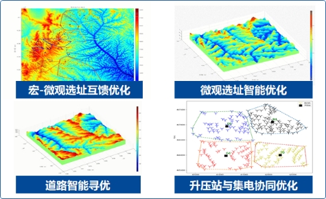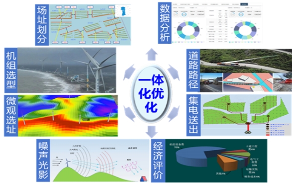 创新点:开发适用多场景风电场设计的机组选型、微观选址、道路与集电系统等多目标协同高鲁棒性多智能体优化技术,突破多场景风电场设计多目标非线性一体化协同优化难题。