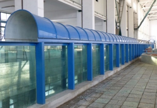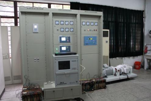 该实验室面积约为595平方米,主要用于开展关于新能源发电建模与并网技术方向研究,其主要工作包括各类风电机组、光伏发电系统、海洋能发电系统的模型开发与验证、参数辨识技术开发与验证、各类新能源发电设备的电能质量测试、功率特性测试、低电压穿越能力测试;基于所建模型开展各类新能源发电系统的并网分析,包括并网规划、穿透功率极限分析、并网控制、优化调度、静态安全分析、动态稳定分析等。其主要设备包括风力发电模拟装置、二维不规则波风浪流水槽、模拟电力系统设备和同步发电机等(如图1所示)。